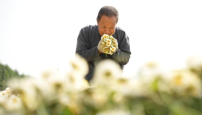 当日,在杨少卫的药菊基地里帮工的成改巧,一时兴起学着年轻人“打卡”菊花。“年轻人‘打卡’是拍照留住画面,我是连味道都记住了。”今年59岁的成改巧每到采摘旺季都会来杨少卫的地里帮工摘菊花。“这茬药菊采得差不多了,下一茬得再等半个月。”
