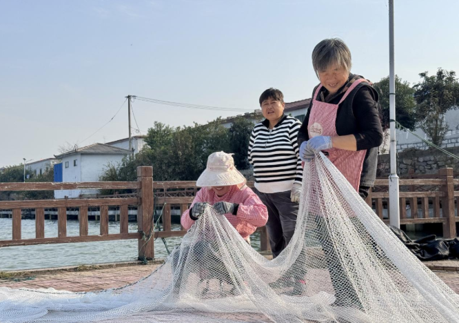 织渔网也成为了留村渔民的新选择。“这一万六千米的渔网是江西客人订的,马上就能完工了。”村民吴明芹手指穿梭,语气里满是踏实。