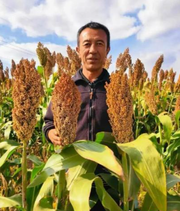 呼和浩特市和林格尔县羊群沟乡羊群沟村的一片高粱地里,黄景贵——这位返乡创业的“新农民”,正站在沉甸甸的高粱穗前,脸上洋溢着丰收的喜悦。他手中的高粱颗粒饱满、色泽金黄,身后连片的高粱田在蓝天白云的映衬下,尽显现代农业的蓬勃生机。