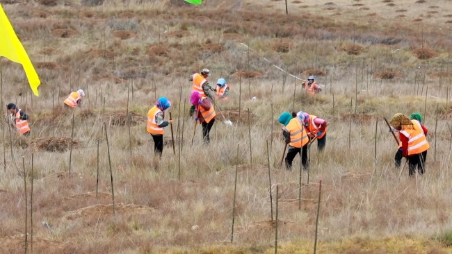 初冬时节,当地抢抓秋冬季苗木扎根的黄金窗口期,动员干部群众、志愿者及林草专业团队进行植树造林活动。