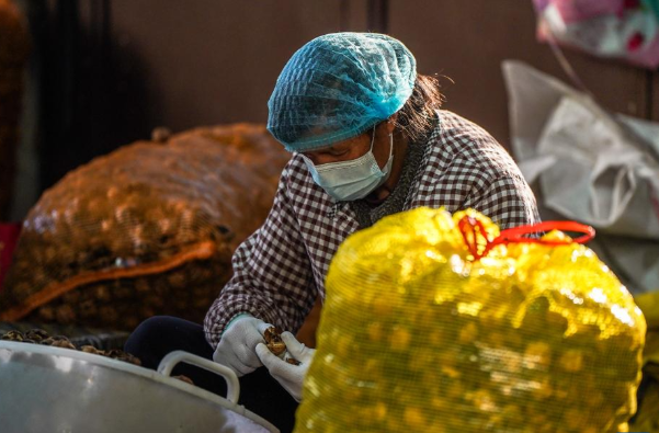 核桃是云南惠及面更广的特色产业。记者走进永平县一家农家小院,村民正围坐在核桃堆旁边,“咔嚓咔嚓”的破壳声此起彼伏,这些手工敲取出的果仁会被运往当地的加工厂。