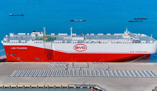 今年,比亚迪全球最大汽车运输船“深圳号”启运,设置9200个停车位
