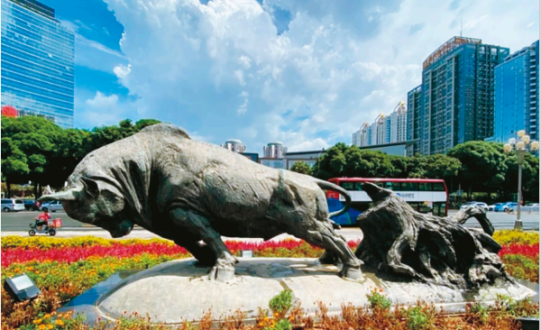 在深圳市委大院门前,一座孺子牛雕塑是这座城市开拓奉献精神的具象符号。