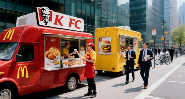 这并非肯德基第一次尝试新的商业场景。早在此前,就有不少网友晒出自己偶遇的肯德基早餐餐车。这些餐车大多分布于一二线城市的地铁和写字楼周边,每辆餐车配备1-2名工作人员,主要服务于通勤的“打工人”。产品品类也与肯德基门店内相同,但下单到取餐的时间大幅缩短。餐车上还醒目地标有“急速立取”字样,主打的就是方便快捷的早餐服务。