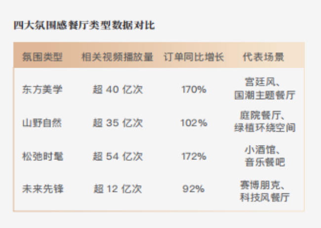 在氛围感餐饮的具体落地中,四种典型风格正快速占据市场主流:东方美学、山野自然、松弛时髦与未来先锋。它们分别对应不同的情感需求与消费场景。
