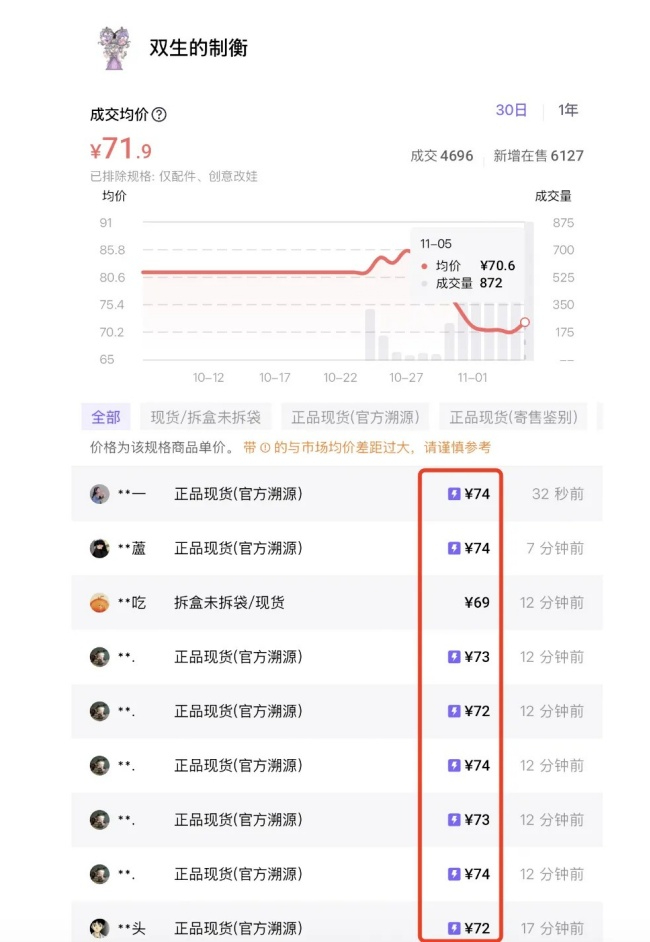 不仅价格回升,相关产品的成交量也在持续上涨,仅“双生的制衡”一款平台内单日成交近千单。