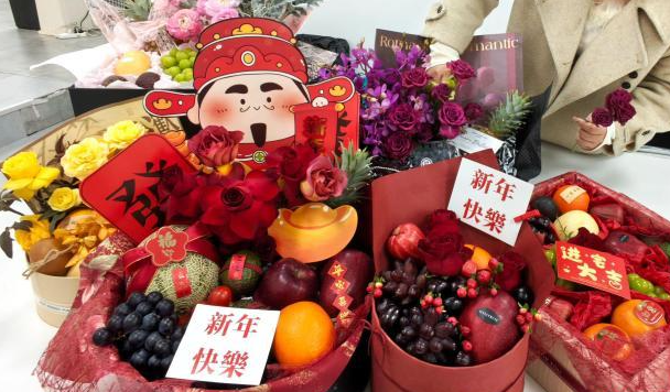 车厘子搭配红提子、红蛇果、雾莲等水果,辅以鲜花、红豆与新年贺卡点缀……在长沙市雨花区一家果礼店,“90后”主理人李倩设计的法式果礼目前已收到100多单新年年货订单,以企业团单为主。