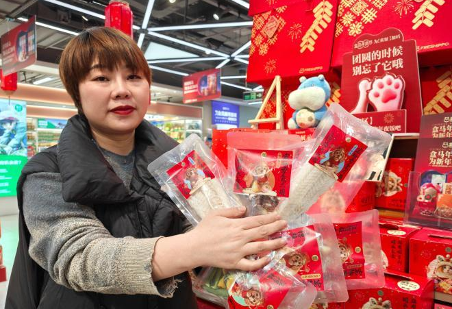 从基础零食到高端智能设备、定制大餐,新春宠物经济升温也催生细分需求,宠物年货品类越来越丰富。“我们升级了宠物年夜饭,养猫家庭可采购‘喵吉利罐头礼盒’,有主粮、甜品,还搭配了领结。供养犬家庭采购的零食大礼包,内含元宝、金条等造型冻干,还有猫犬通用的伴手礼冻干‘压岁红包’。”一家大型商超长沙喜盈门店店长刘喜雯介绍。