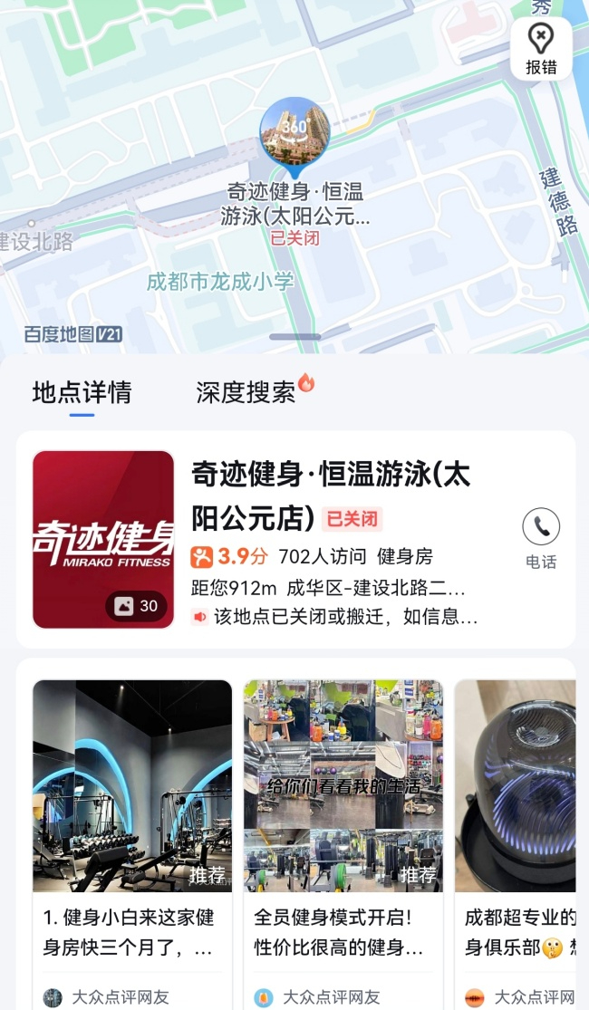 记者查询发现,奇迹传承成立于2024年1月,注册资本10万元,法定代表人唐凯。10月21日,记者按其注册地址成都市武侯区晋吉东二街167号1层实地探访,发现该处为一家未营业的美容店,周边并无奇迹健身门店。