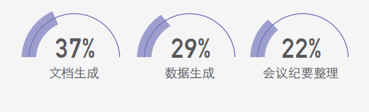 从应用场景看:AI高频应用集中在文档生成(占比37%)、数据分析(29%)和会议纪要整理(22%)三大领域,这一分布清晰反映出Al正在重塑基础办公流程。