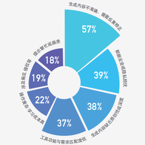 还有超三成的职场人遇上“生成内容缺乏原创性和深度”“功能匹配不上需求”的糟心情况。