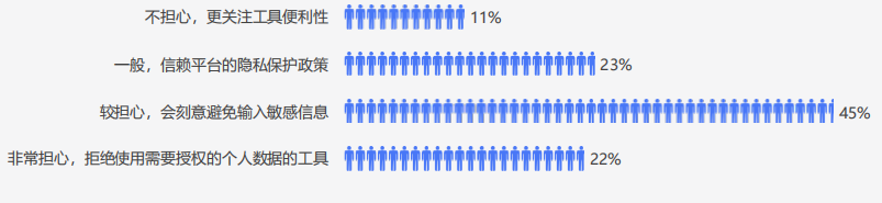 职场人使用AI工具时,对数据和隐私风险的担忧程度