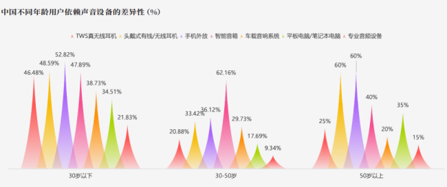 在硬件使用上,50岁以上群体对头戴式有线/无线耳机、手机外放的依赖度均达60.00%,核心诉求高度聚焦于清晰音质与适配场景的内容,这一需求尚未得到充分满足。