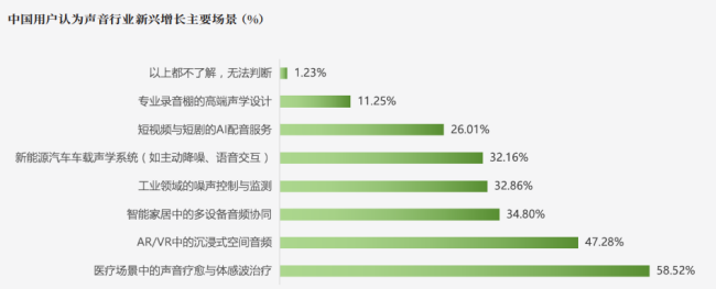 尽管ASMR、自然白噪音已经广泛流行,但针对心理干预、耳鸣缓解的专业疗愈音频,需求缺口依然很大,58.52%的用户关注医疗场景的声音疗愈,却难觅优质内容。