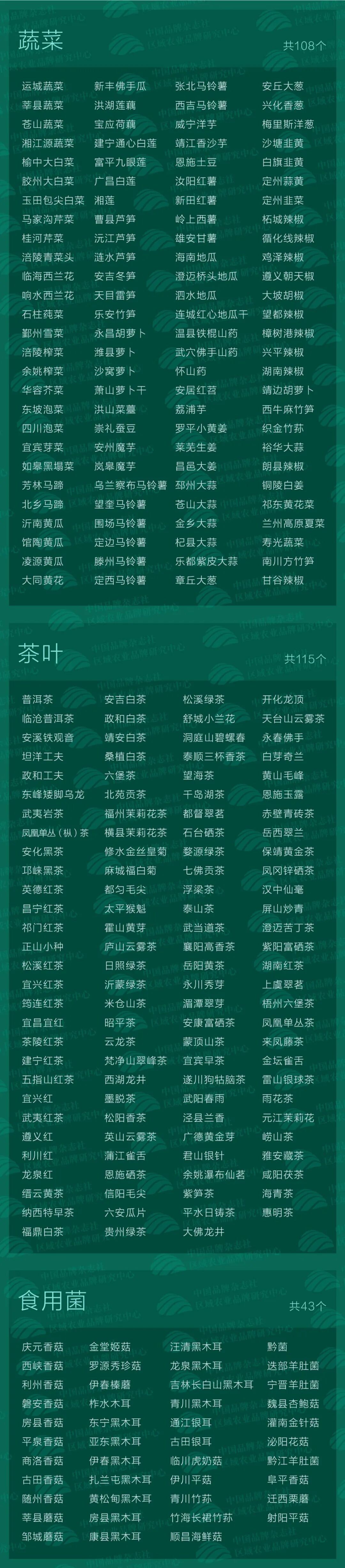 包括地理标志品牌、农业产业类农产品区域共用品牌等。
