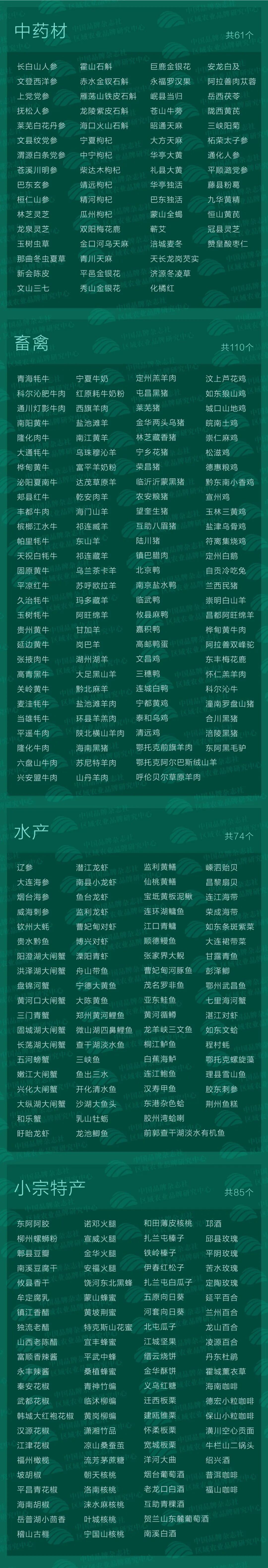 全国各区域农业产业品牌: