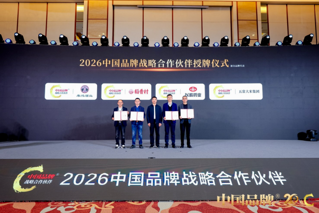 主旨演讲结束后,两场重磅签约仪式接连举行,为中国品牌未来发展注入全新活力。在“2026中国品牌战略合作伙伴”的发布仪式上,牟池酒业、稻香村、以岭药业与五常大米集团四家知名品牌作为代表进行了共赢共创互动。