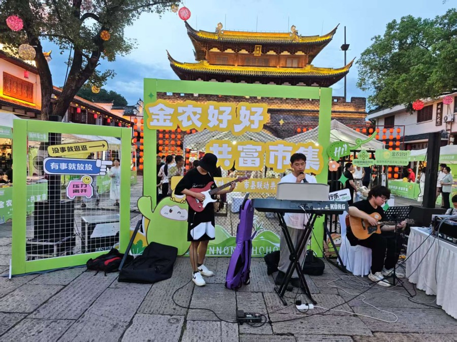 6月20日,“金农好好・共富市集”在保宁门前火热开市。金华两头乌及“金农好好”授权企业参与其中,于古城青石巷陌间实践助农共富。