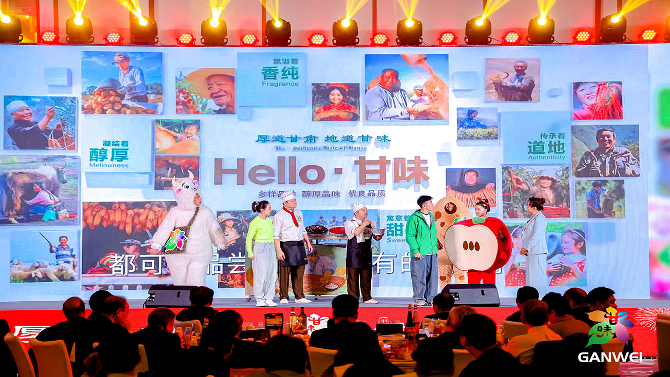 为“甘味”品牌量身打造的情景剧《甘味漫陇原》,通过角色扮演的艺术形式,生动展现了甘肃各地的特色农产品,成为全场一大亮点。