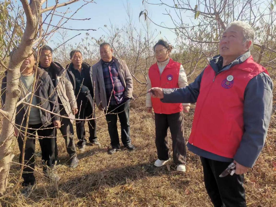 河南开封杞县林业发展中心组织科技特派员王瑞钦、刘连章、张寒雪一行,深入西寨乡魏寨村孙彪蟠桃园,开展了一场系统、深入的桃树冬季管理现场技术培训与指导活动。