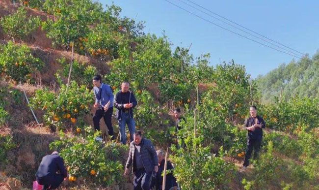 走进河源市东源县仙塘镇龙尾村鲜橙基地,漫山遍野的果树缀满金黄饱满的果实,果香四溢,吸引市民和游客前来采摘品尝。