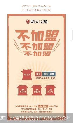 4月26日,北京胡大饭馆(以下简称“胡大”)通过其官方微信公众号发布信息表示,将从今年5月1日起收回北京以外的加盟店。同时,胡大也在这条推文中透露胡大目前也面临着“被山寨”的问题,除了在线下有冒用“胡大”名称开的实体店外,在外卖平台上也存在大量的山寨门店。胡大相关负责人方绪虎在接受北京商报记者采访时表示,收回加盟店是因为胡大所经营的中餐业态标准化难度大导致加盟管理难度也很大,此举既是为了维护胡大的品牌形象,同时也能为消费者提供更好的产品和服务。