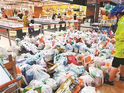 疫情期间,超市线上订单、到家服务大幅增长。