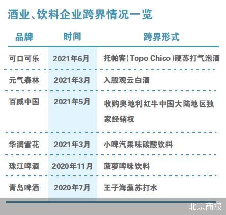 无论是可口可乐到中国卖酒,还是各家啤酒企业卖饮料的热情,都在消解酒类和饮料之间的边界,丰富了各自的经营范围。
