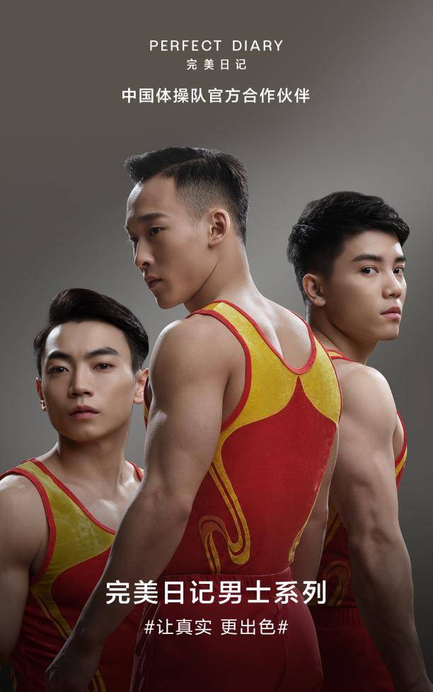 “他”经济正在兴起,完美日记也按捺不住“野心”。在7月23日发布的产品海报上,现役中国男子体操队运动员邹敬园、肖若腾、林超攀一字排开,亮丽的运动服、硬朗的肌肉线条、俊秀的面庞,给人带来一次力与美的冲击。完美日记此次推出的男士系列产品的定位是“专为年轻男士定制,专业时尚综合的理容男士系列”,希望能够为男士理容打造一站式的服务和产品。