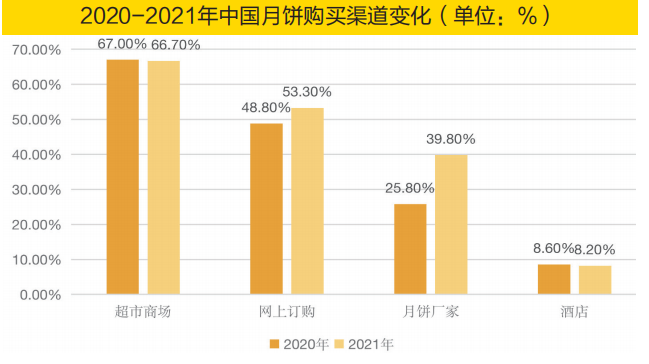 据艾媒数据2021年6月调研数据显示,线下超市市场仍为消费者最为偏好的购买渠道,同时,月饼网上订购渠道占比提升。线上销售打破区域间地理限制,跨区域尝新成为众多消费者的爱好,这也为月饼品牌开拓全国市场提供了发展良机。