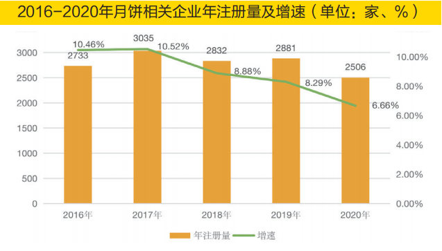 天眼查数据显示,目前我国企业名称或经营范围含“月饼”,且状态为在业、存续、迁入、迁出的企业超过2.3万家。截至2021年7月30日,以工商登记为准,我国今年新增月饼相关企业数量已超过620家。