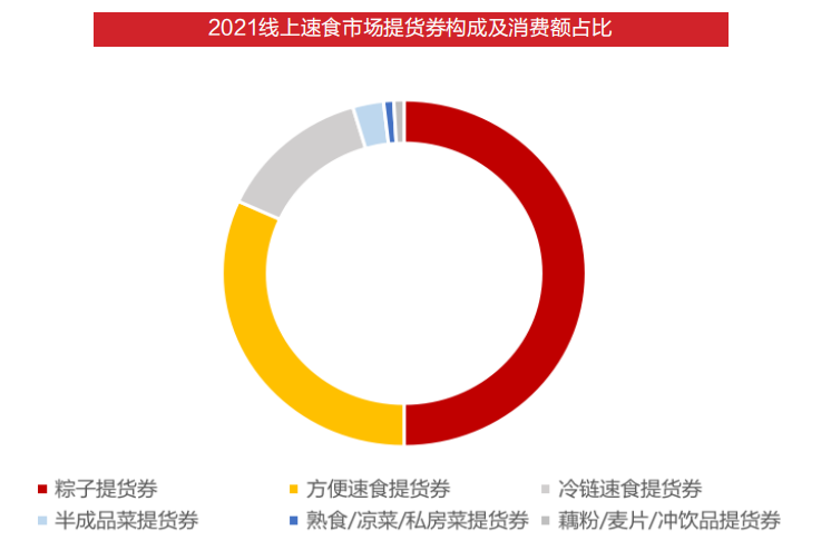 《2021方便速食行业洞察报告》预估,中国方便速食已经成为一个2500亿级别的大市场。方便速食在线上线下齐增长,成为2020年六大年度美食趋势之一。线上渠道是速食发展的有力增长引擎,线上速食提货券消费不断提升。
