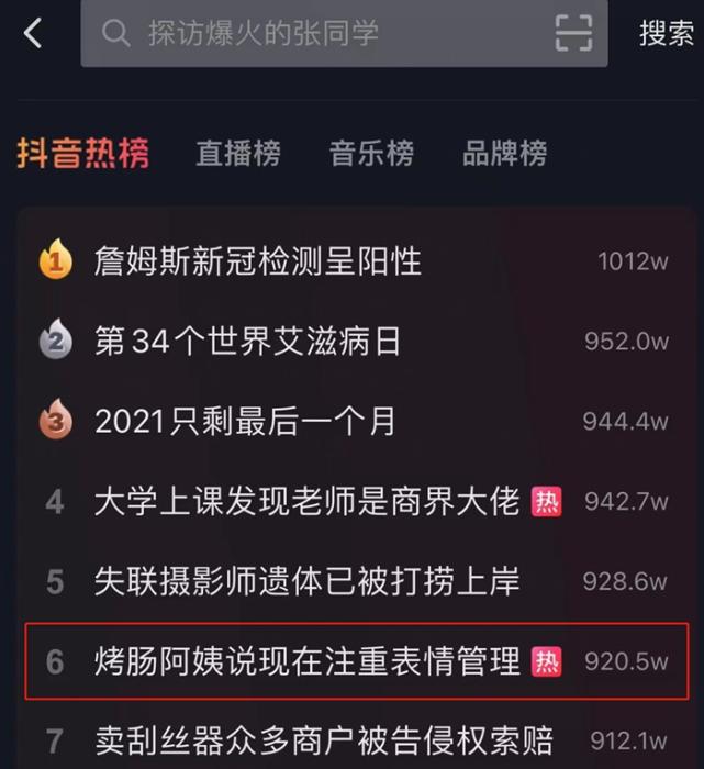 10根烤肠相关话题频发登上抖音热搜。12月1日抖音截图