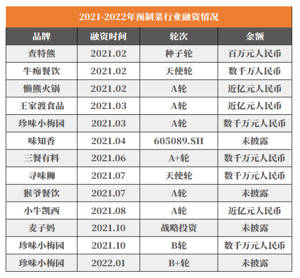 企查查数据显示,2013年至今,预制菜赛道共发生72起投融资事件。从融资时间来看,2020年-2021年为融资高峰期,2020年预制菜赛道共有12起融资,2021年共有超10家预制菜相关企业完成融资。