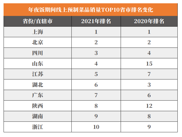 第一财经商业数据中心报告显示,东部及中部省市成为年夜饭预制菜消费的主要区域,而上海、北京则牢牢占据“干饭”主力军城市。其中,山东、陕西两地今年线上预制菜消费排名增长迅速。