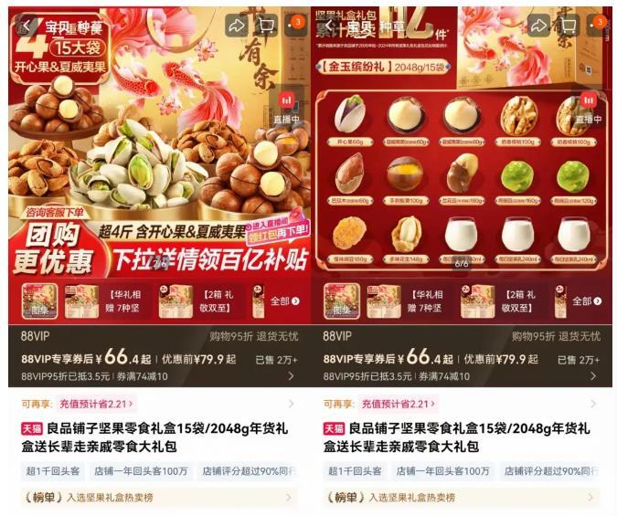 蓝框内的三款礼盒均不是纯坚果礼盒。 截图自电商平台。