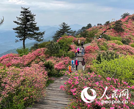 湖北省龟峰山风景区,游人畅游在杜鹃花海中。人民网记者 余璐摄