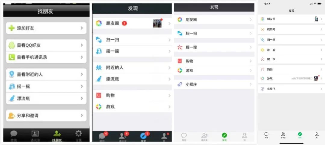 微信发现页面历年的变化