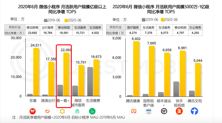 看一看+是今年小程序月活用户增量最快的前 5 名之一