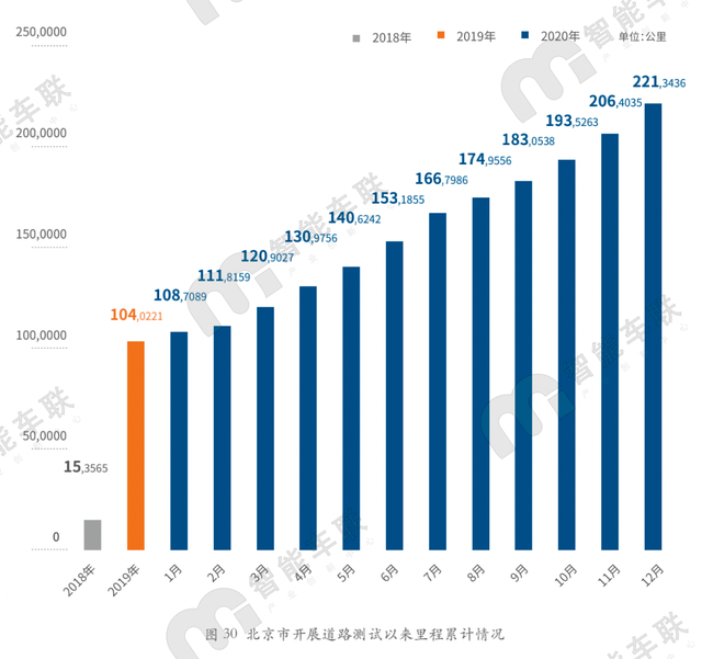 其中,北京已累计开放四个区县的自动驾驶测试道路共计200条、699.58公里,开放了亦庄和海淀2个自动驾驶测试区域,面积约140平方公里,自动驾驶测试道路覆盖范围全国领先。北京市累计为14家自动驾驶企业87辆车发放一般性道路测试牌照,自2018年起,北京市自动驾驶车辆道路测试安全行驶里程累计已超过221.34万公里,平均每月测试里程9.8万公里,道路测试总里程全国领先。
