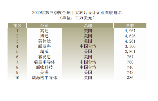 芯片产业链可以分为设计、代工制造、封装测试3个环节。在最新的可查询的芯片设计、代工、封测企业的营收排名榜单中,从数量、营收额来看,中国大陆企业在设计、代工方面离行业顶尖仍有不小差距。