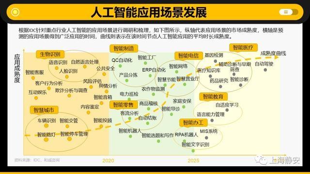 随着疫情中人工智能场景的密集应用、落地渠道的增加和技术的不断成熟开放,预计2021-2025年中国人工智能将再度高速增长,产业迎来黄金期。从基础层来看,国内人工智能芯片市场发展迅猛;从技术层面来看,人工智能关键技术日趋成熟,正步入商业化落地阶段。人工智能在医疗和制造业渗透率不断增加;而制造业的“黑灯工厂”“无人产线”,交通运输业的“智慧交通”等都加速了AI的场景落地。