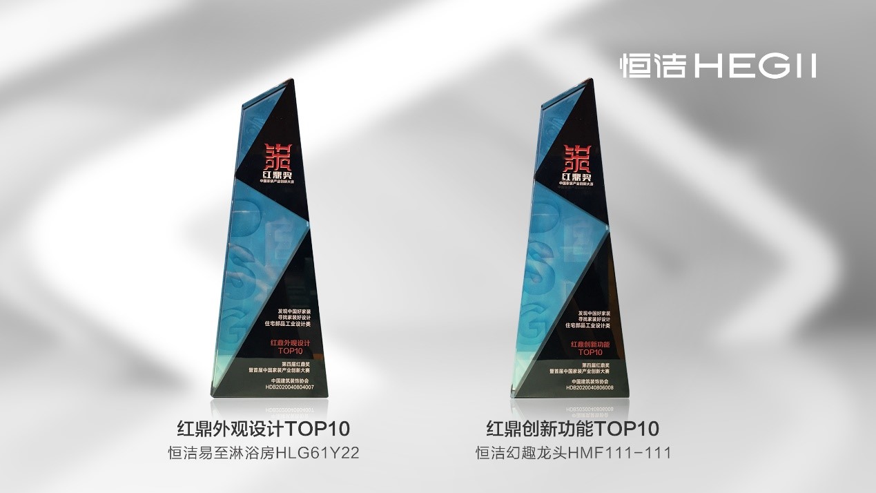恒洁易至淋浴房、幻趣龙头分获“红鼎外观设计TOP10”、“红鼎创新功能TOP10”大奖!