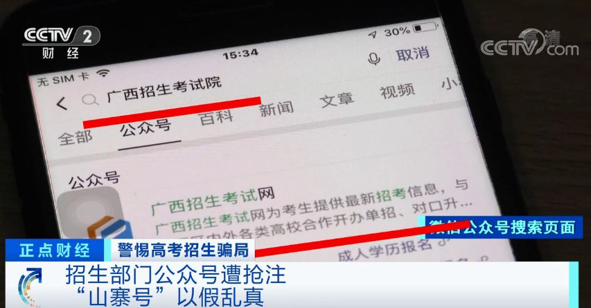 今年高考结束后,有广西的考生家长向记者反映,原本打算在微信中搜索广西招生考试院的公众号,但输入关键字后搜到的却是一个由个人注册的“山寨号”。