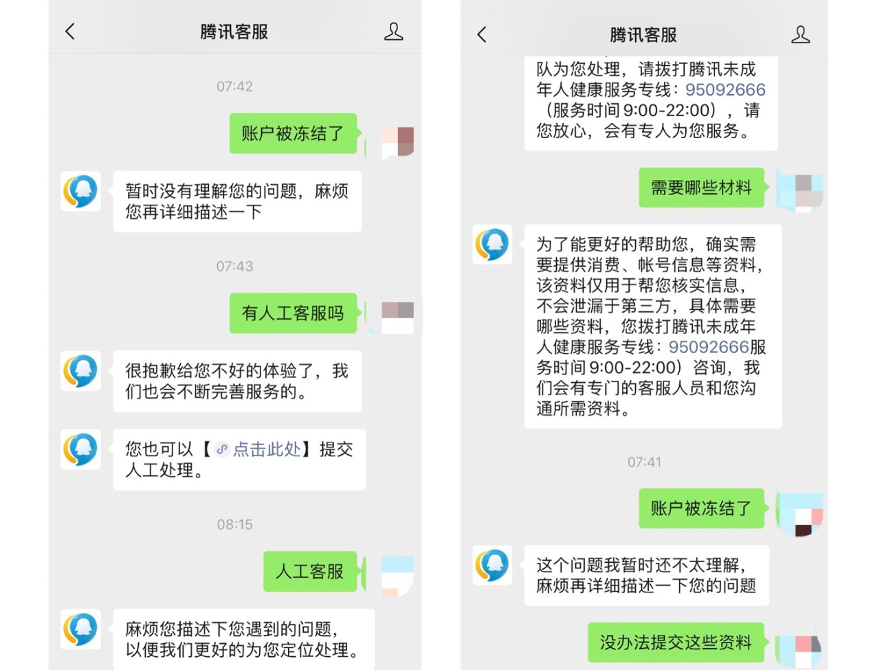 据谢娜描述,“即使按照腾讯的提示也登录不进去,打电话给人工客服也没有人接听,每次响十几分钟就挂断。找线上客服按照相关提示也没有登录进去,花了一整个下午的时间。本来一个电话几分钟就能解决的问题,非要弄一下午还没有解决。”