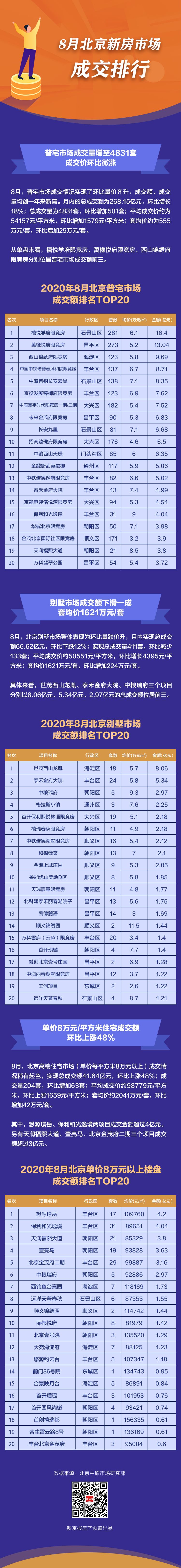 8月,个别新盘表现抢眼。位于石景山区的禧悦学府限竞房以16.4亿元的成交额居于普宅市场之首,萬橡悦府限竞房以13.04亿元的成交额居于亚军,上述2个楼盘成交额过十亿;世茂西山龙胤实现成交额8.06亿元,位列别墅市场首位。