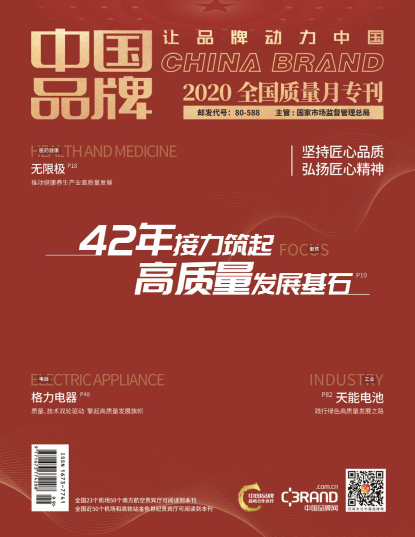 2020年全国“质量月”到来之际,为进一步深入总结我国质量强国、品牌强国发展进程中探索出的新思想、新经验、新模式,中国品牌杂志、中国品牌网特别策划推出“2020年全国质量月《坚持匠心品质,弘扬匠心精神,助力高质量发展》”为主题的综合深度专刊报道,号召并引领企业坚持匠心品质,弘扬匠心精神,坚持将品质做为品牌的核心竞争力,走出一条新时代质量强国、品牌强国的高质量之路。并向质量、品牌工作行政主管部门、相关机构赠阅。