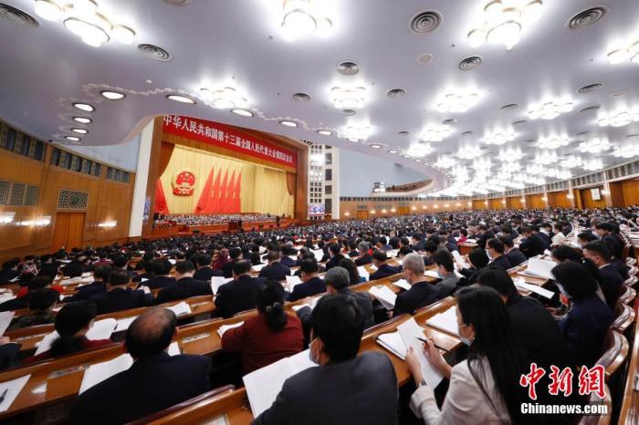 3月8日,十三届全国人大四次会议在北京人民大会堂举行第二次全体会议。 中新社记者 盛佳鹏 摄