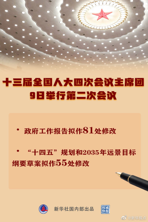 记者9日从十三届全国人大四次会议主席团第二次会议上获悉,政府工作报告拟作81处修改,“十四五”规划和2035年远景目标纲要草案拟作55处修改
