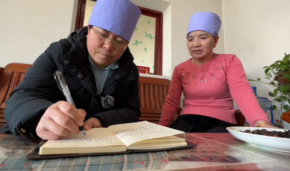 马慧娟(左)在村民家中走访调研。新华社记者 杨植森 摄